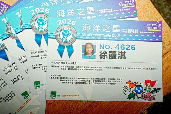 2026年3月31日,兒童節前夕,慈心基金會在新北市溪洲國小安排了一場「特殊任務」。教育局長與減塑大使bb親自來到學校,感謝師生們為守護環境與海洋生態落實減塑,並頒發「海洋之星」給特別認真的16位減塑模範生,也致贈減塑大使徽章給局長、校長,感謝他們對減塑教育的支持。