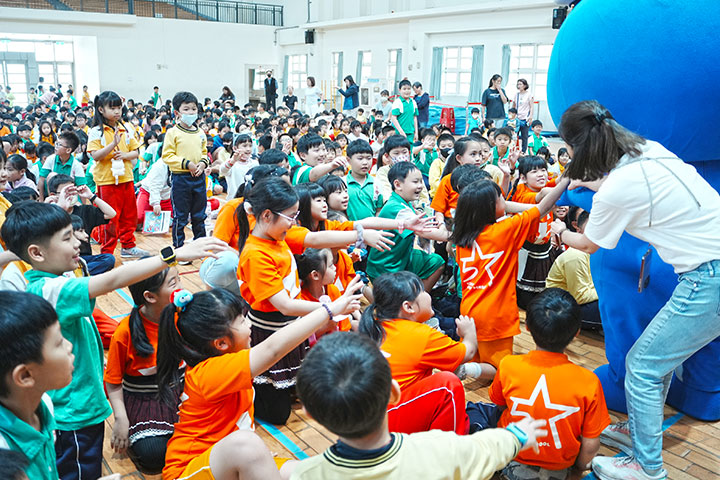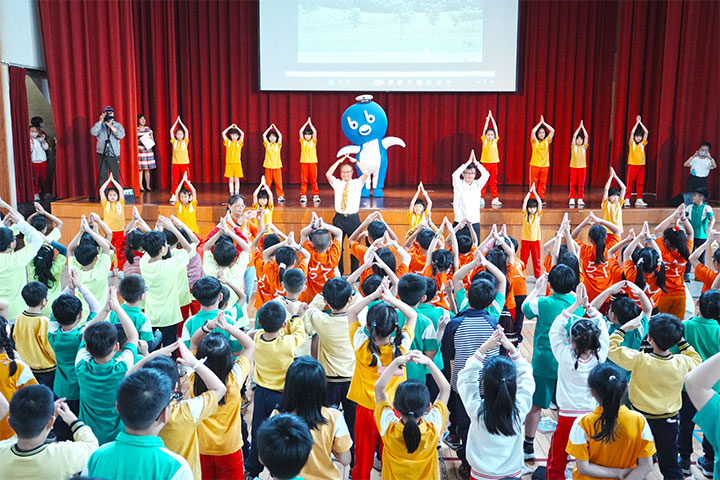 當風靡校園的減塑大使bb藍色可愛的身影一出現,全場立刻沸騰,孩子們開心歡呼,在和小朋友有趣的互動問答後,教育局長、校長與孩子們跟著bb熱情地減塑帶動跳,全場氣氛嗨到最高點,這不僅是一場充滿歡笑的溫暖相聚,更是慈心基金會、福智文教基金會與市府教育單位、學校,攜手將減塑教育落實於校園的重要展現,也讓孩子們度過了一個意義非凡的兒童節。