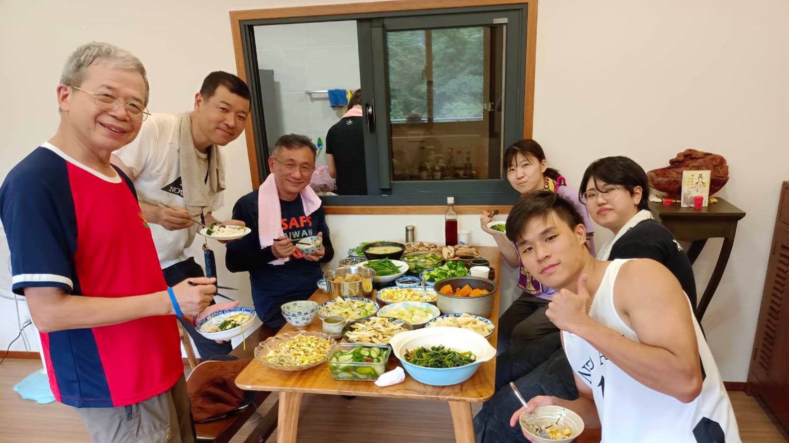 慈心義工準備美味餐點與各種協助令團隊備感溫暖。提供農地的顏錫文先生(左1)表示能響應慈心基金會創辦人的守護大地的心願與有榮焉。
