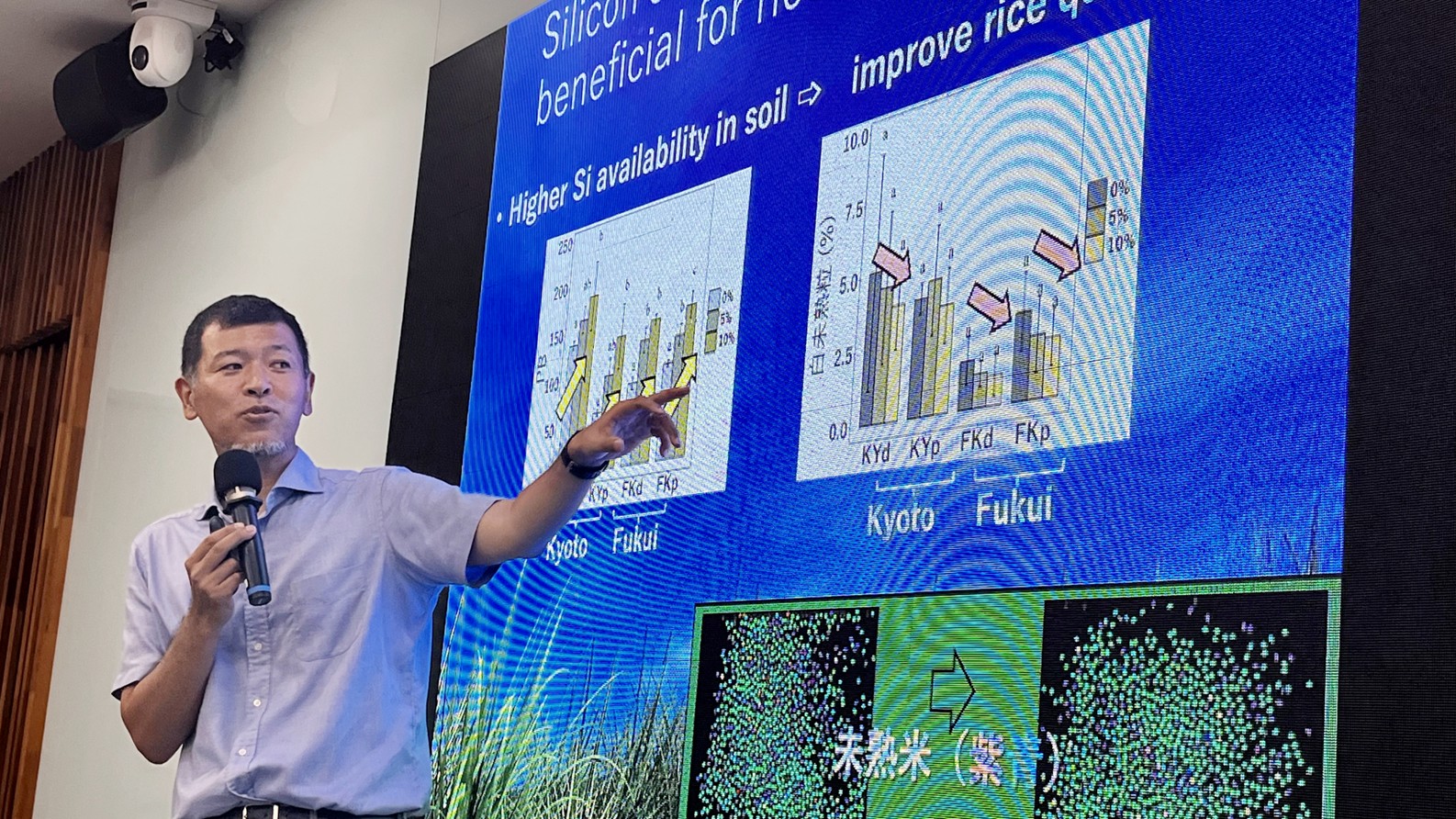 日本京都府立大學關真由子博士發表在台灣實驗,結果令人驚艷。(左)成果發表會主持人-京都府立大學生命環境科學研究科博士後研究員楊家語