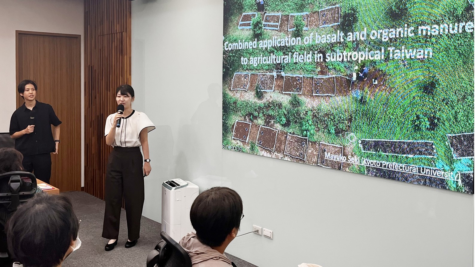2025年8月14日,許教授協同中尾副教授與當時的兩位研究生,日本京都府立大學博士後研究員 關真由子、臺灣大學農業化學系碩士生李芳慈,特別來到慈心基金會,分享實驗研究結果。中尾教授提到,這樣的試驗多於實驗室完成,此次玄武岩碳匯試驗是首次在有機農田實地完成的試驗,極具指標性!