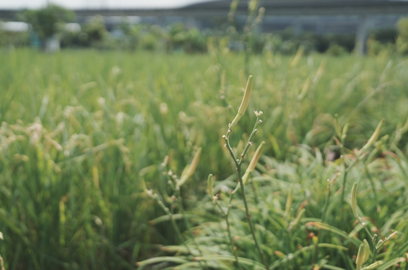 用可食的金針花進行田埂植被的營造,降低親族對田埂長草的反感。