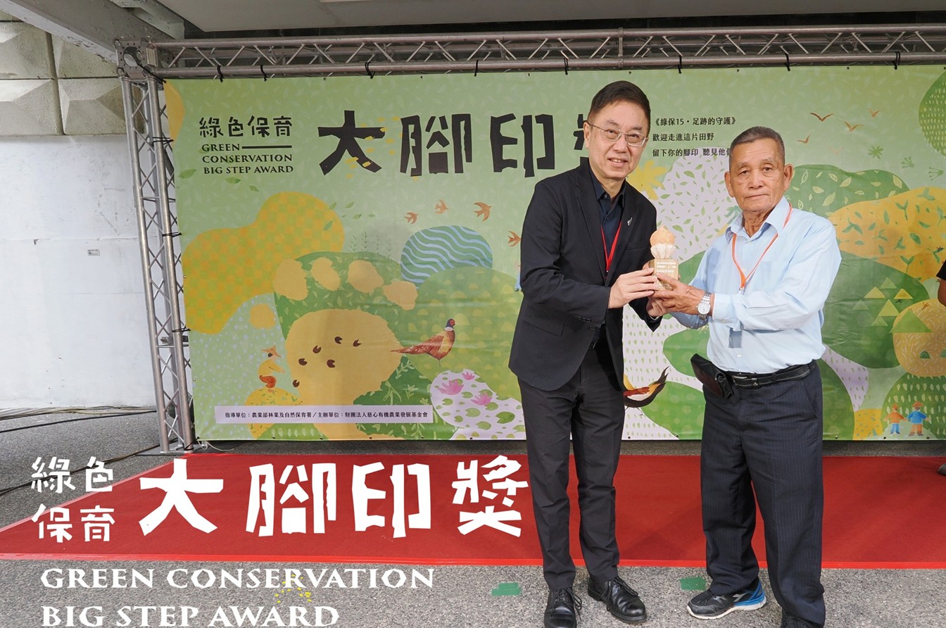林木泉在第二屆大腳印獎中與林業保育署林華慶署長合影