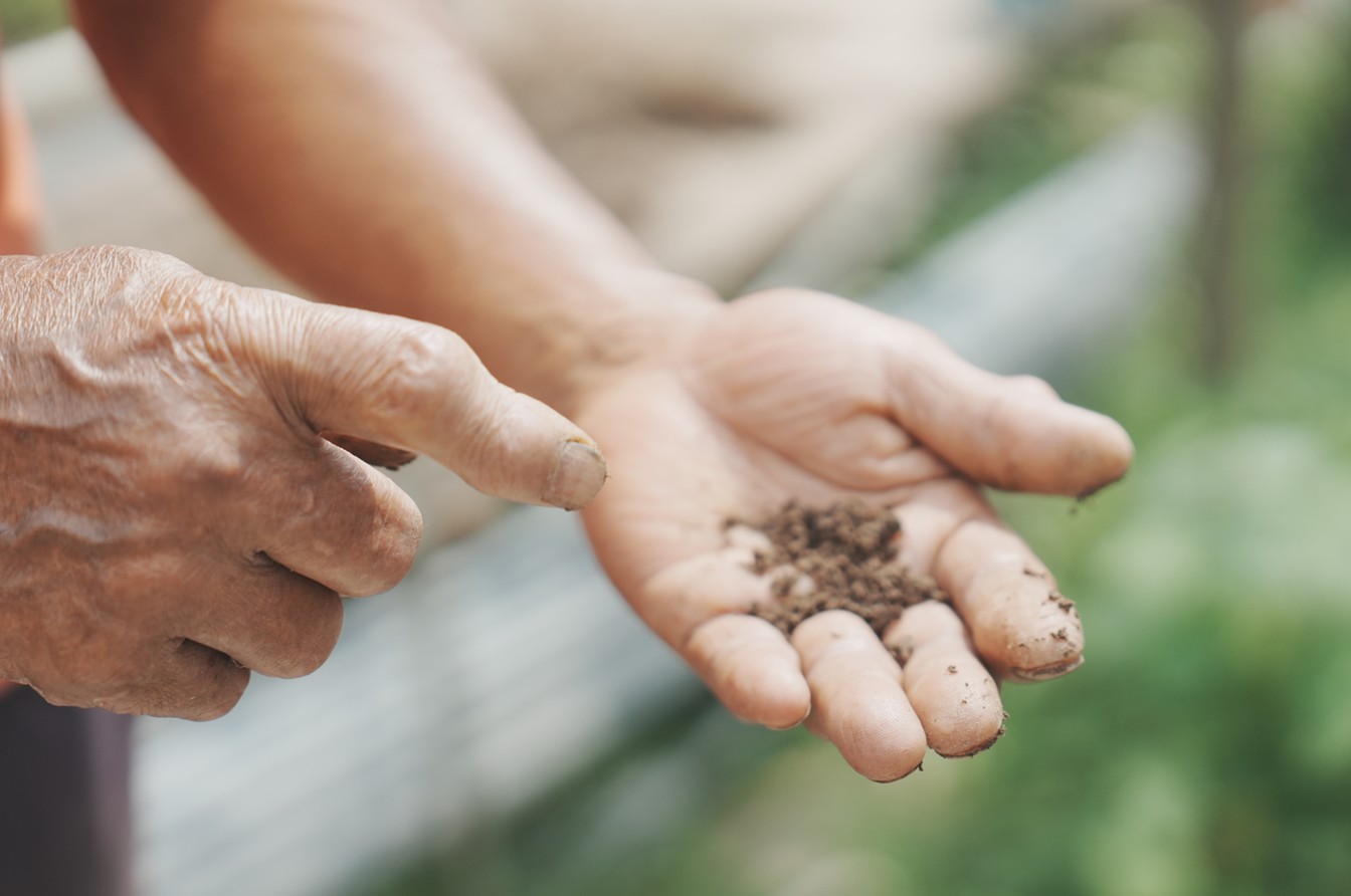 多餘的草則收進堆肥桶,一層草、一層土交替疊放,依氣候狀況加水、悶蓋或翻曬,八個月後,雜草轉化成散發乾草香氣、充滿養分的培養土。在這片田裡,每一株雜草都被善用——保濕、護土、再轉化為養分,實現真正的循環利用。
