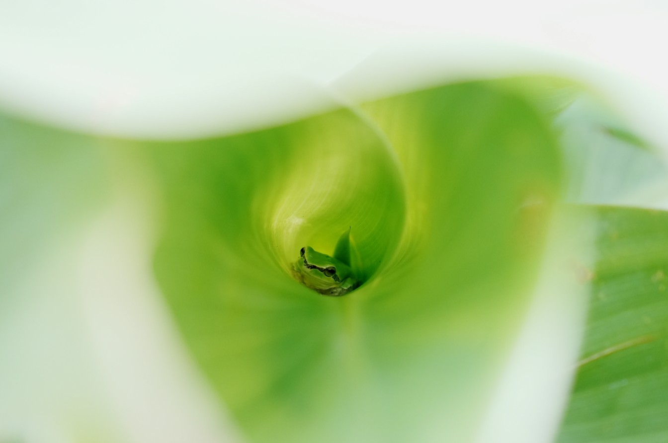 走進黃金全大哥的田區,遠方是冒著白煙的小油坑,眼前幾塊水田,旁邊還有生態池與小小的菜圃。過了季節,所以只能瞧見幾朵潔白的海芋。黃金全大哥熱情揮著鋤頭與耙子,一邊介紹,一邊笑著說:這些,是田區保有好土質的秘密武器。