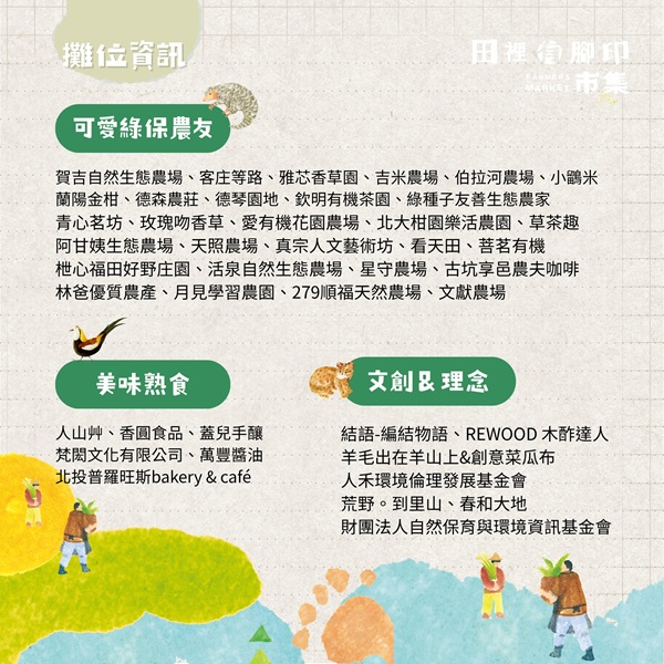 還有文創品牌、環保蔬食攤位,田裡到餐桌,一次逛個過癮!