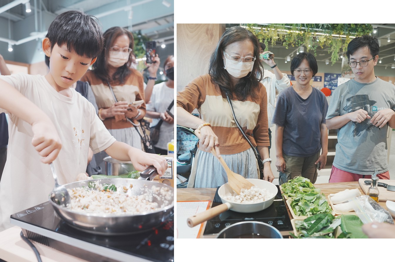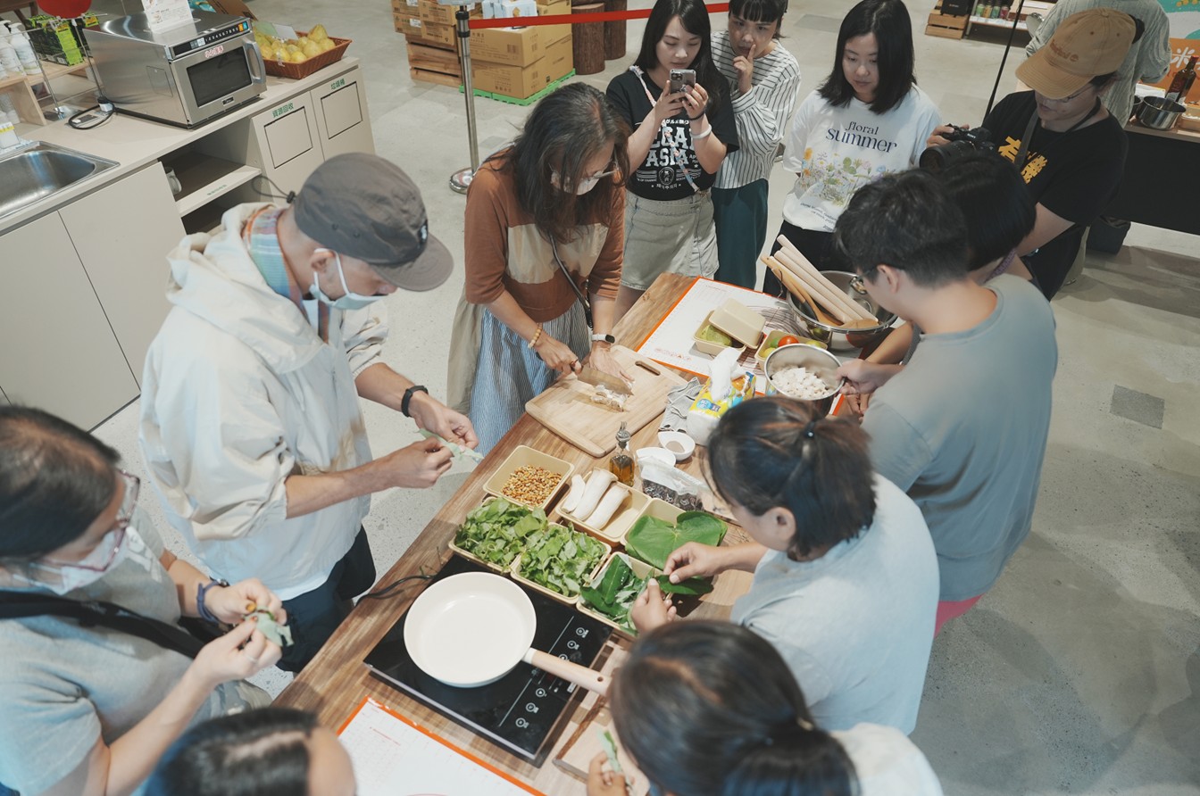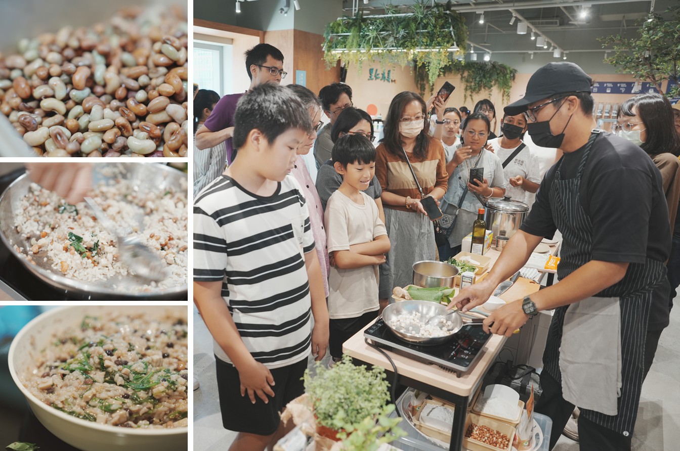 活動壓軸,由和俊昕主廚主導示範「野菜樹豆小米燉飯」創意料理實作,展現如何將小米融入現代餐桌。以樹豆高湯為底,加上月桃葉與薑片,森林氣息躍然鍋中;洋蔥炒至透明,甜味緩緩釋放;米粒不洗直接入鍋拌油,與前一晚浸泡的小米同煮,兩種澱粉交織出濃稠香氣。二十分鐘攪拌,是技術,也是冥想。當刺蔥與龍葵在蒸氣裡散發清香,大家輪流試吃,從硬芯到適口,感受文化、科學與風土在一鍋中相遇,突破小米「只能煮小米粥」的刻板印象,帶來味覺上的驚喜與新鮮感。